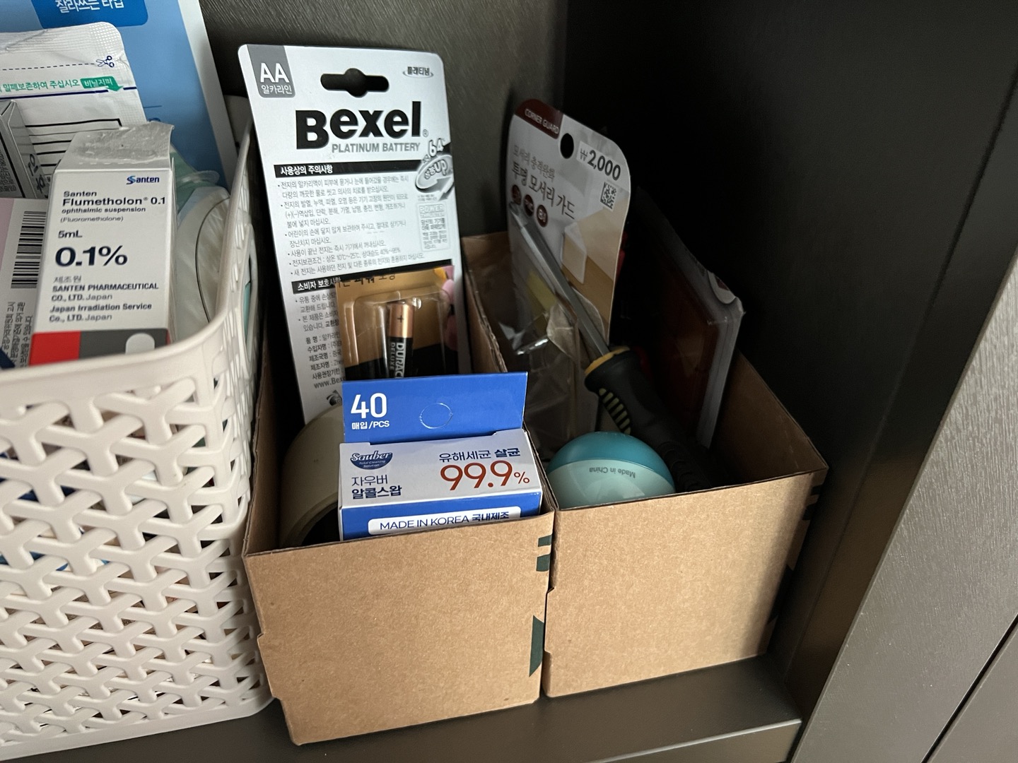 또 커피캐리어는 잡동사니 수납장 정리할 때 사용하면 정말 편해요