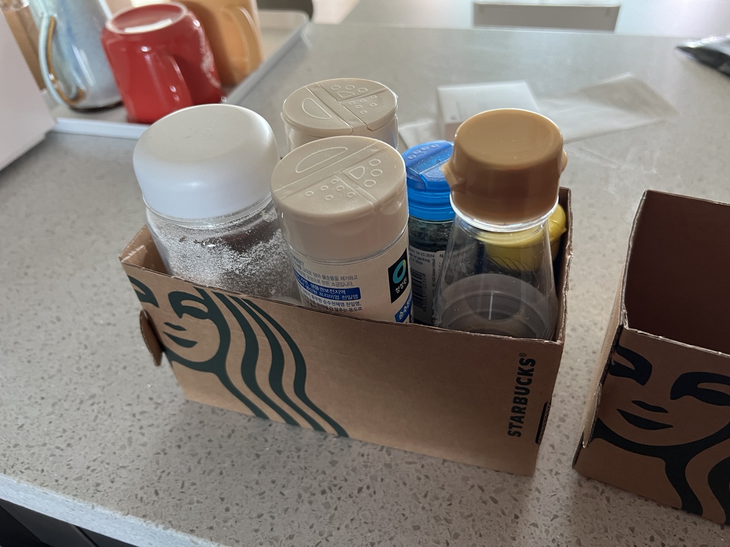 또 각종 양념통들 보관할 때도 커피캐리어를 이용해 보세요~