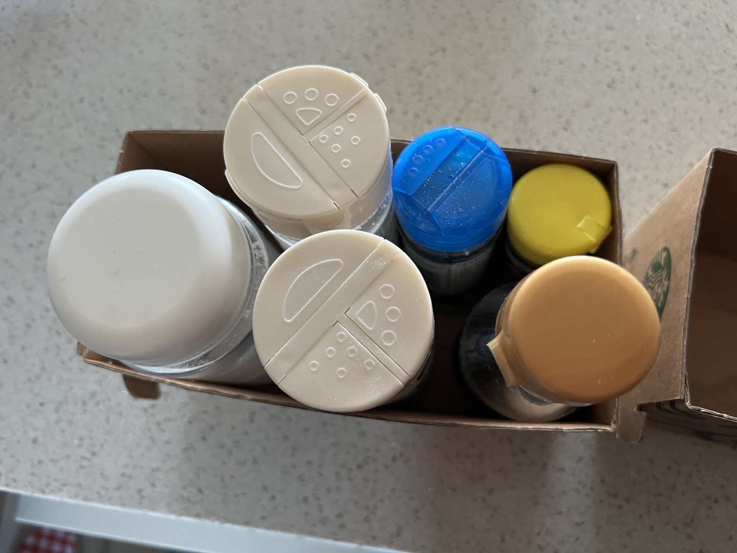 그냥 두면 픽픽 쓰러지는 작은 양념통들은