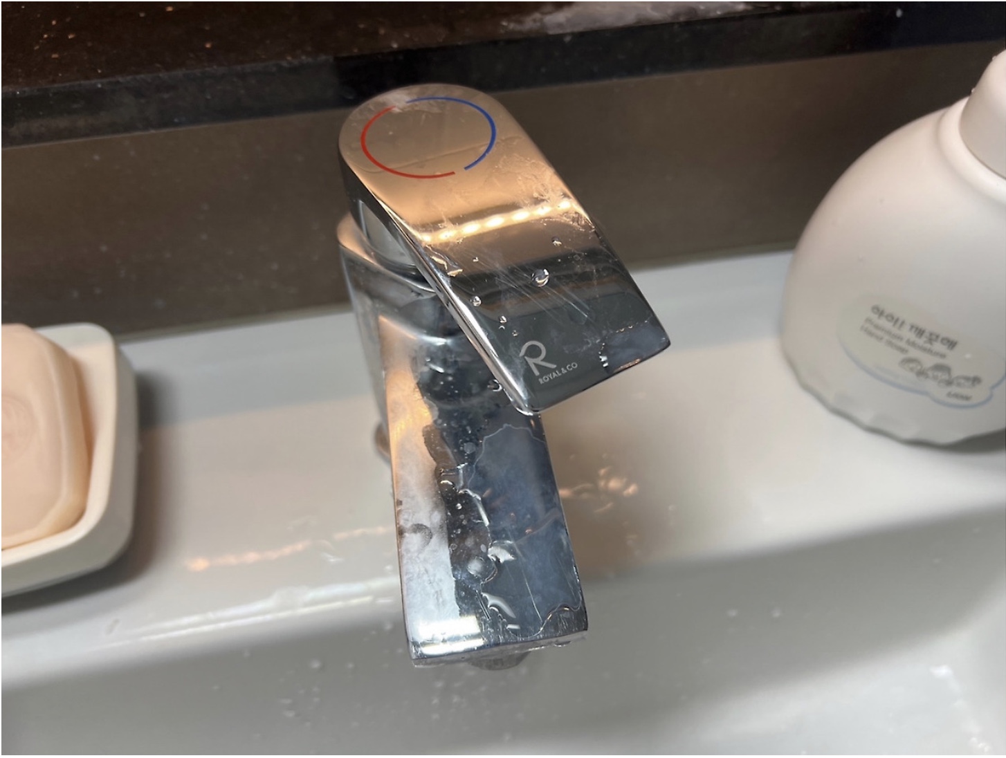 그다음 바세린을 발라주기 좋은 곳은 세면대 수전!