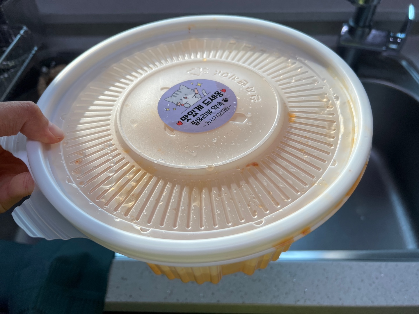 고추기름이 범벅된 배달용기가 종종 나와요.