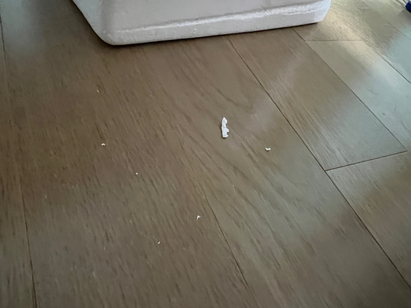 이 방법으로 하면 이렇게 바닥에 스티로폼 눈꽃가루가 날려서