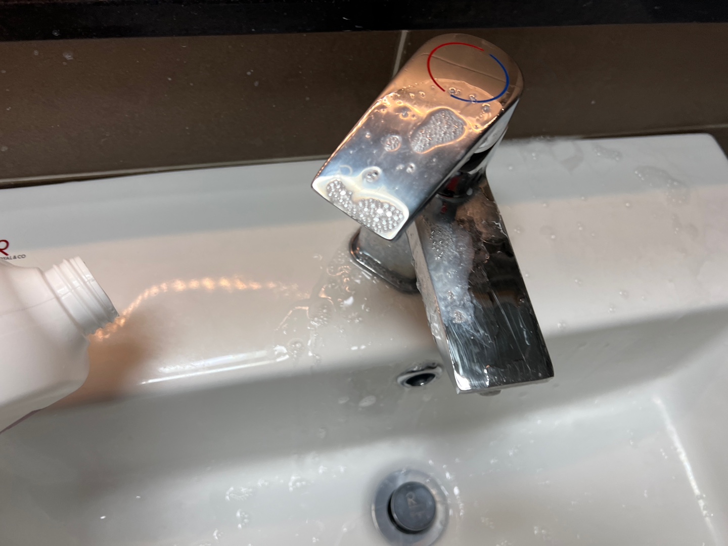 물로 여러번 헹궈주었더니 세면대가 정말 깨끗해졌어요