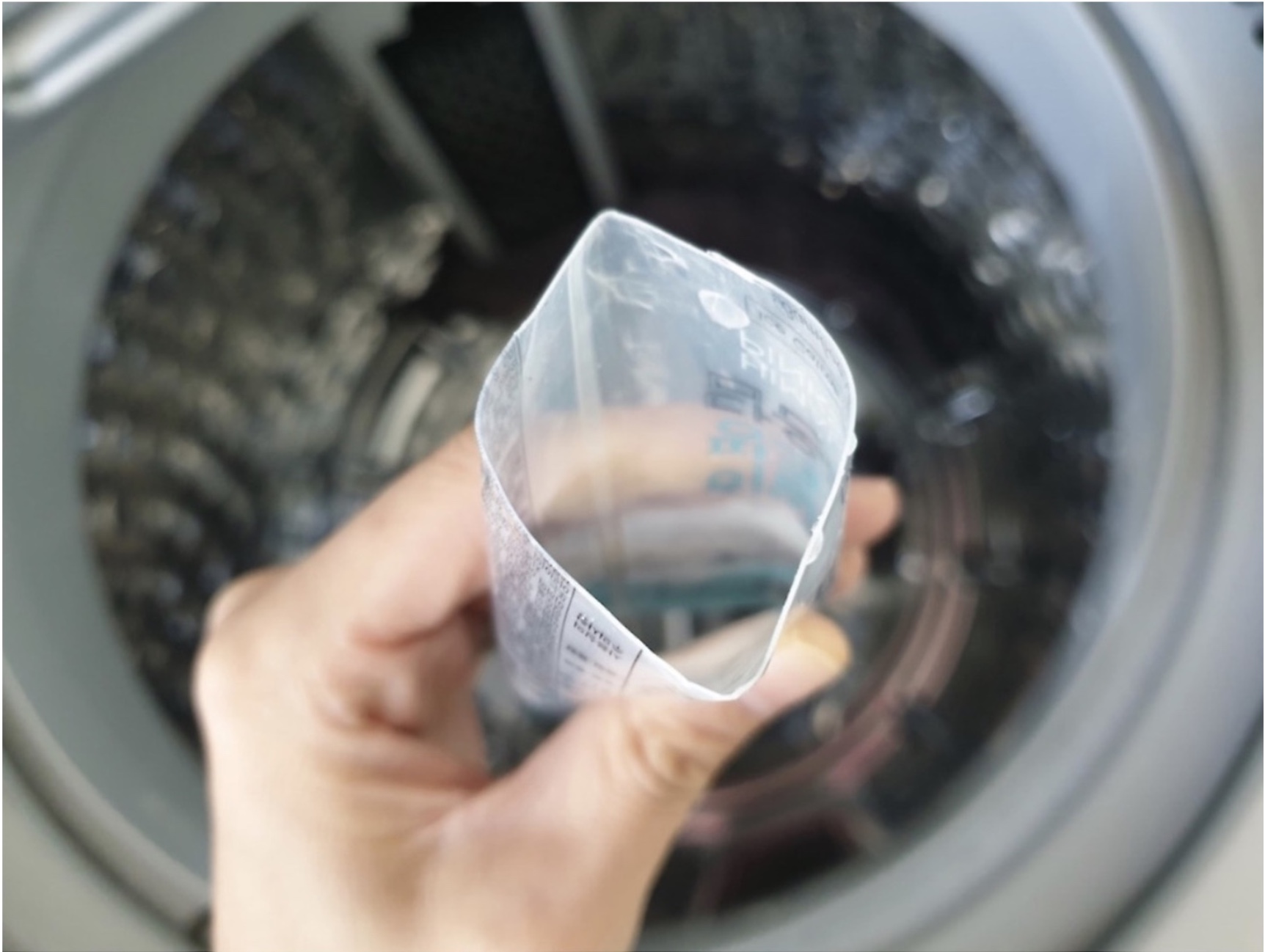 잘 잘라둔 치약을 세탁기에 넣어주세요