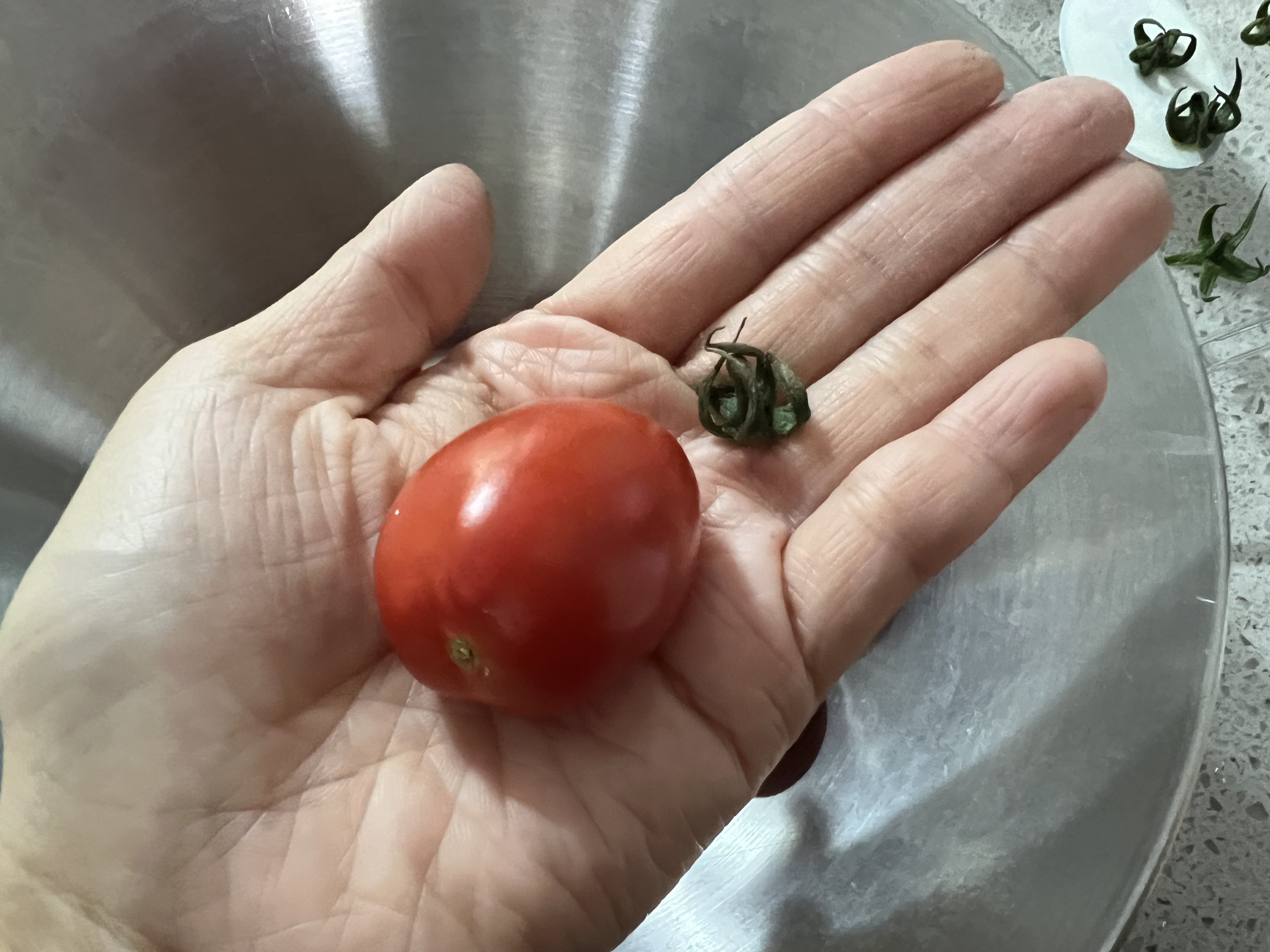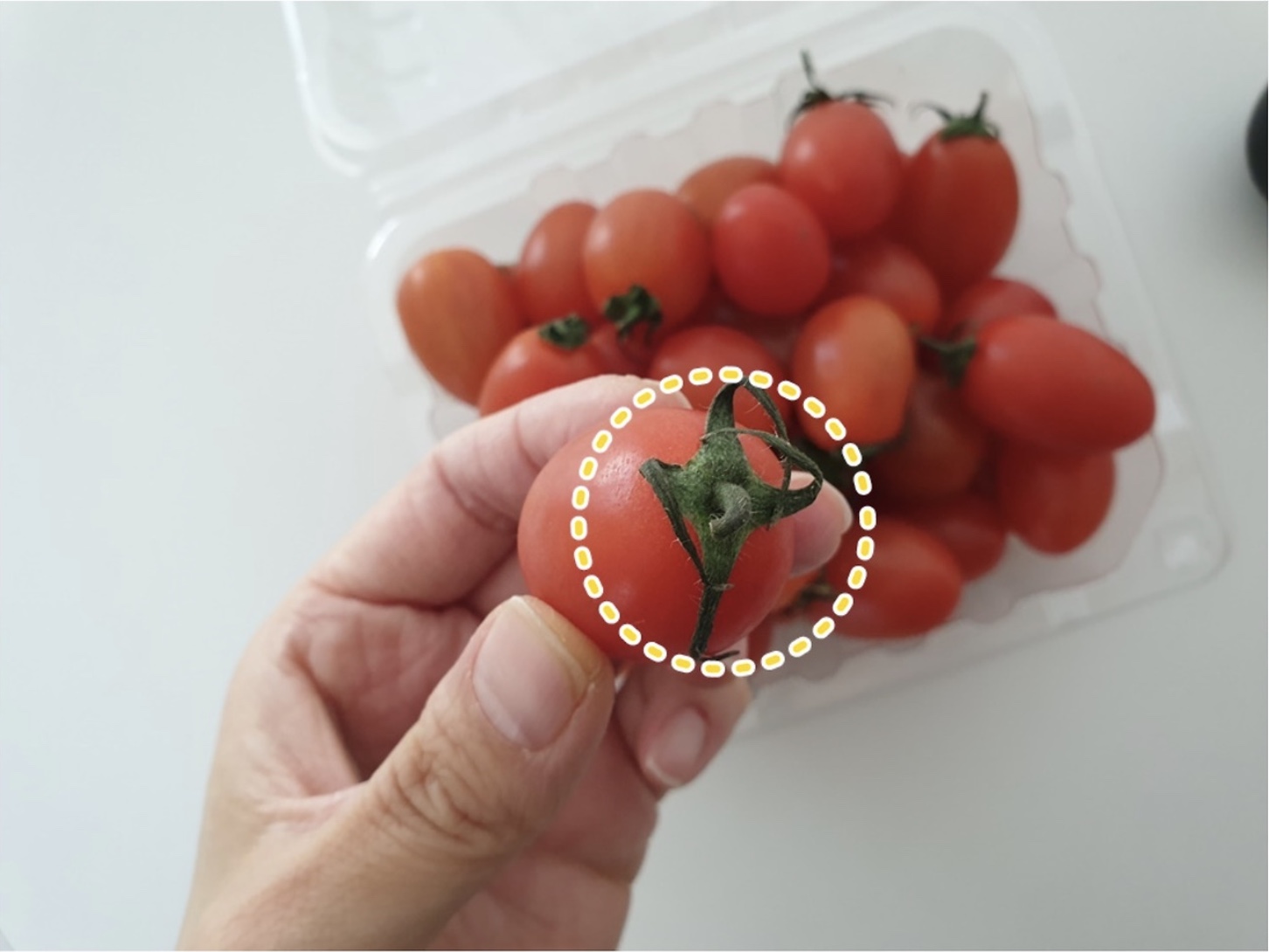 먼저 방울토마토를 세척하기 전에 꼭지부터 제거해 주세요