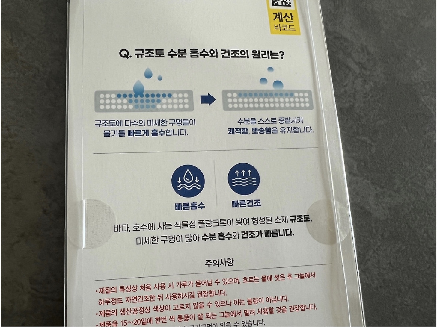 물기를 빠르게 흡수한 후 수분을 스스로 증발시켜서