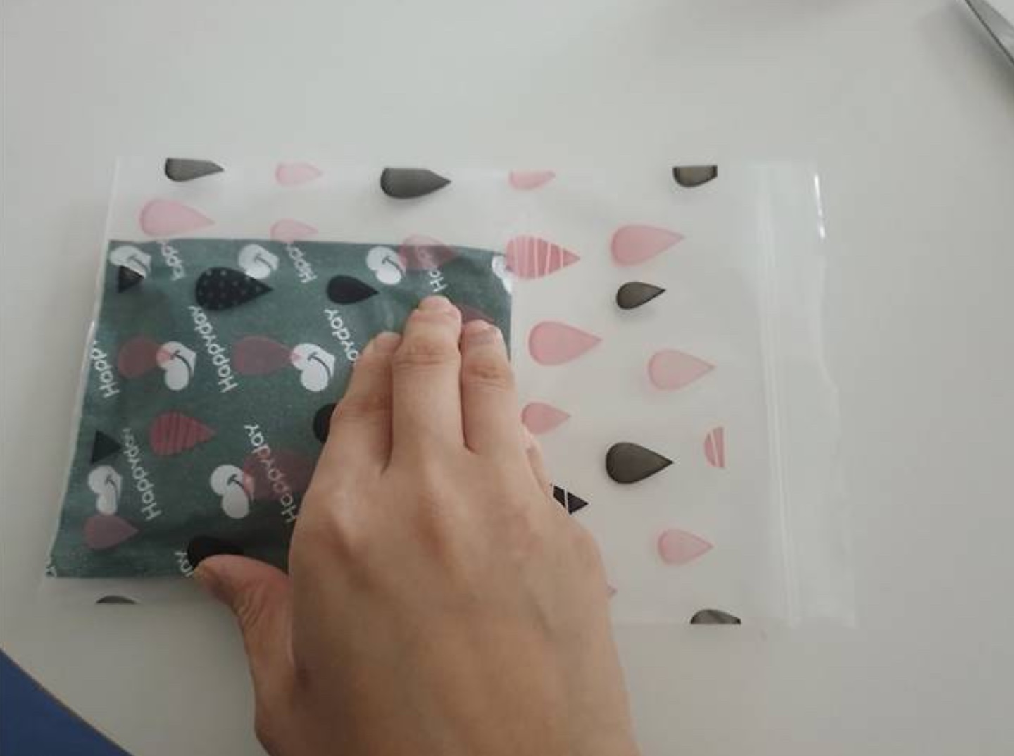 지퍼백에 잠시 사용한 핫팩을 넣고 손바닥으로 꾹꾹 눌러서 공기를 뺀 후 닫아주세요