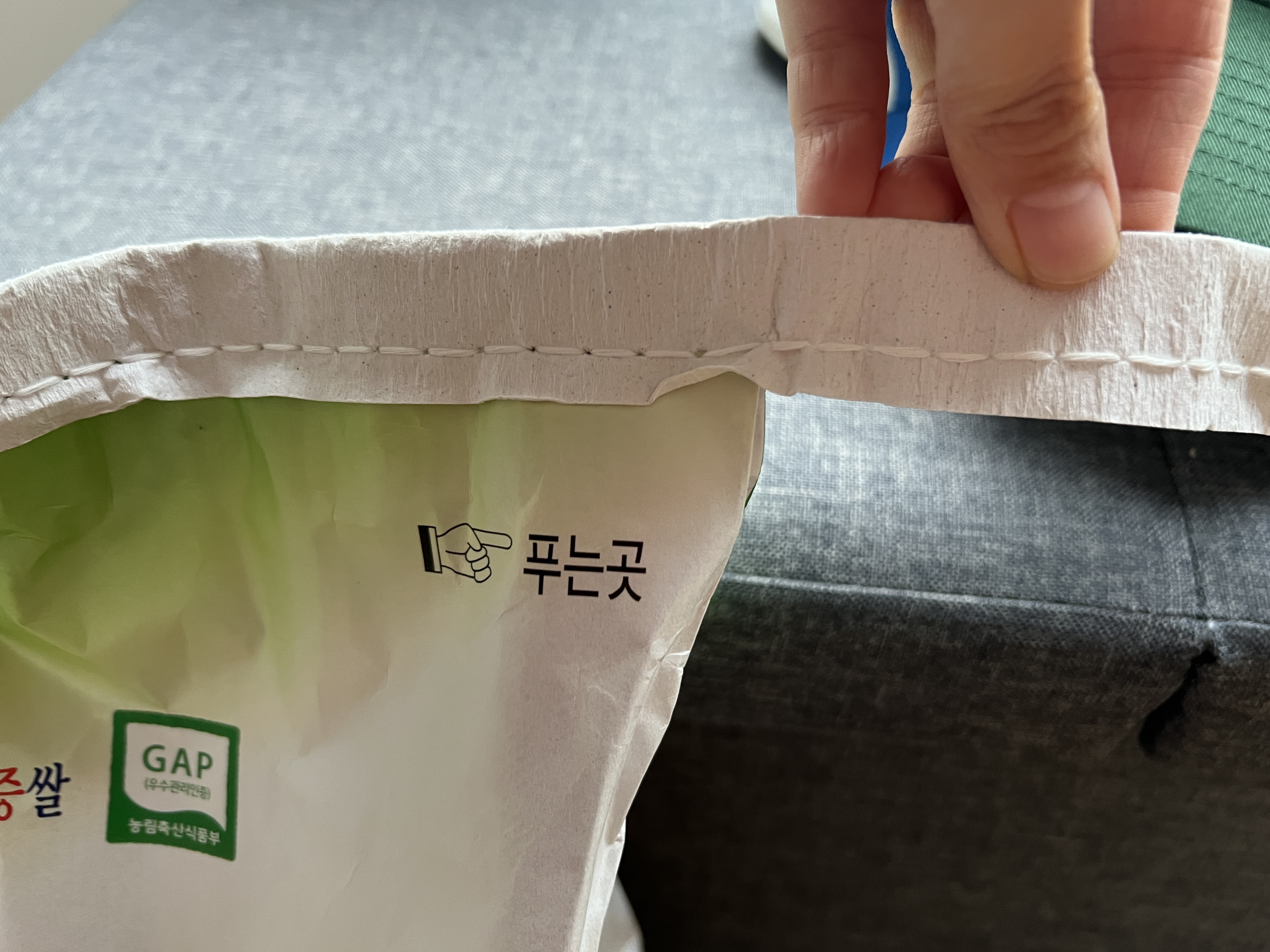쌀포대 우측 상단에 보면 이렇게 푸는 곳이라고 적혀 있어요 (없는 것도 있어요~)