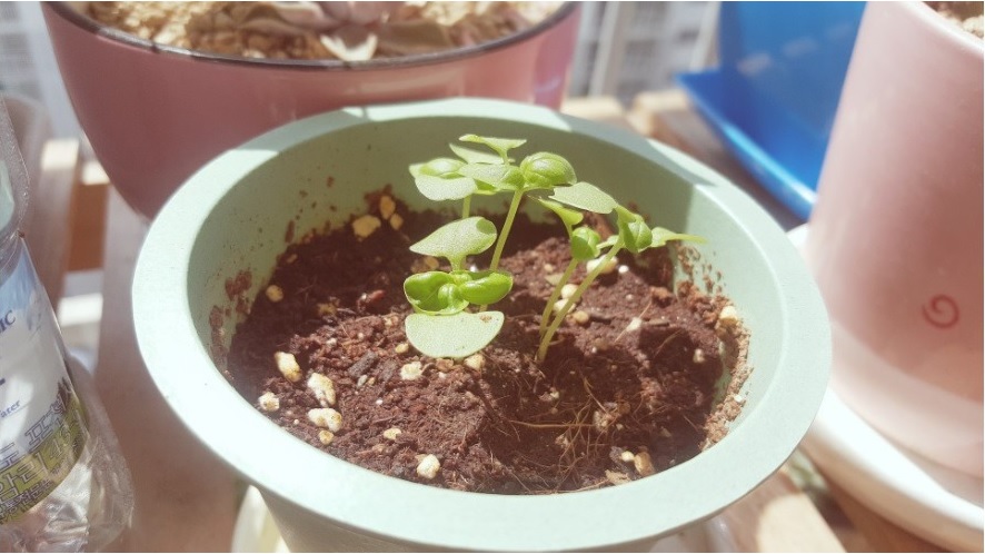 처음 파종할때는 작은 화분에 시작했는데 집이 좁은지