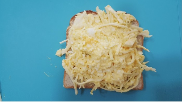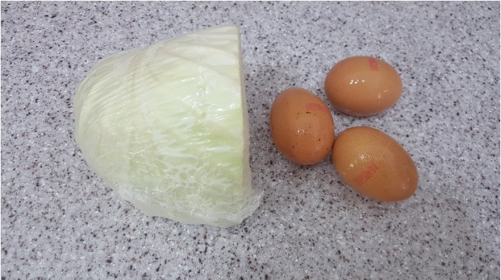 재료 : 양배추, 달걀 3개, 식빵, 마요네즈, 소금, 후추