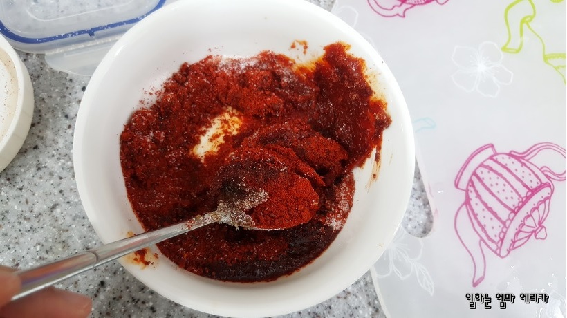 양념장 : 고추장1T, 고춧가루 3T, 매실액1T, 간장3T, 설탕 1.5T, 후추약간