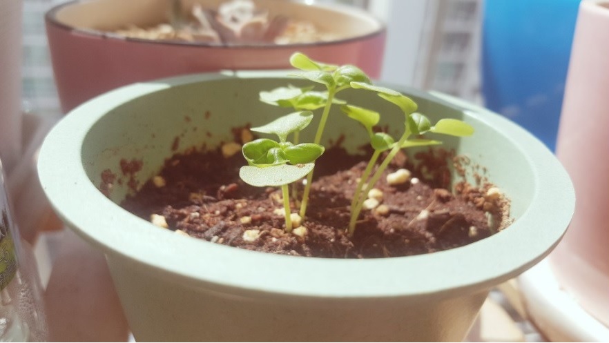 물만 주고 키웠을뿐인데 처음에 파종했던 화분이 작아졌어요.