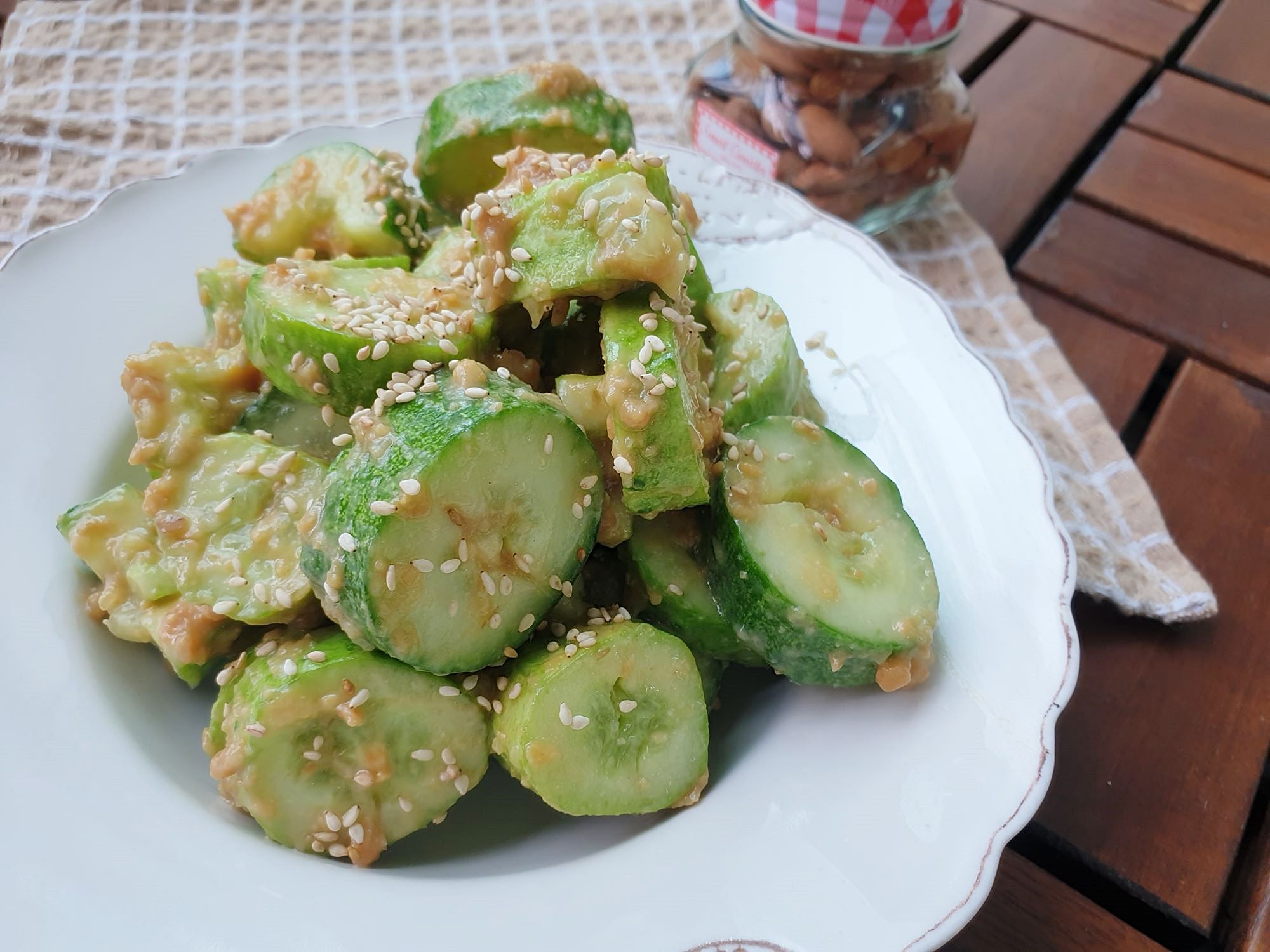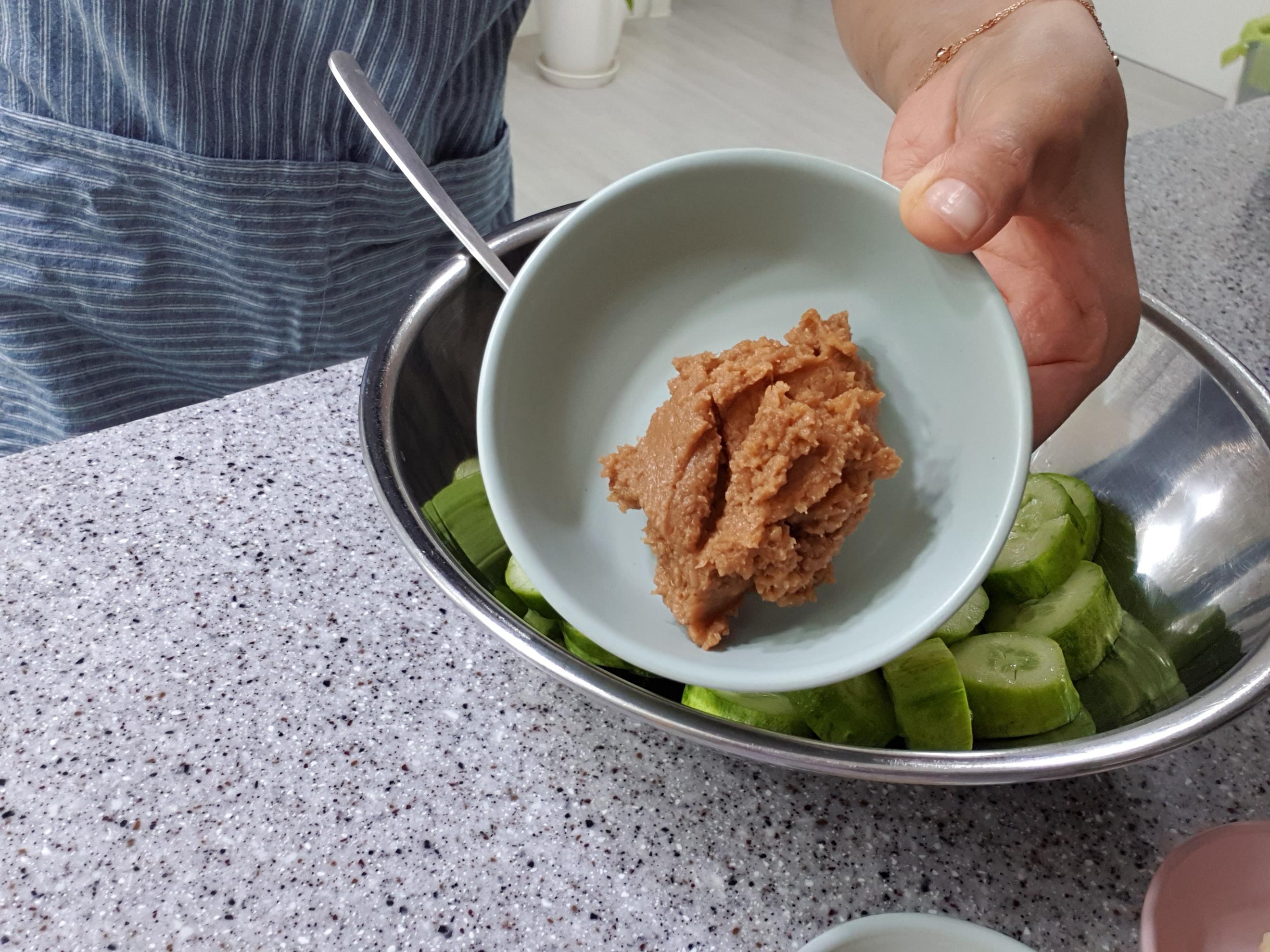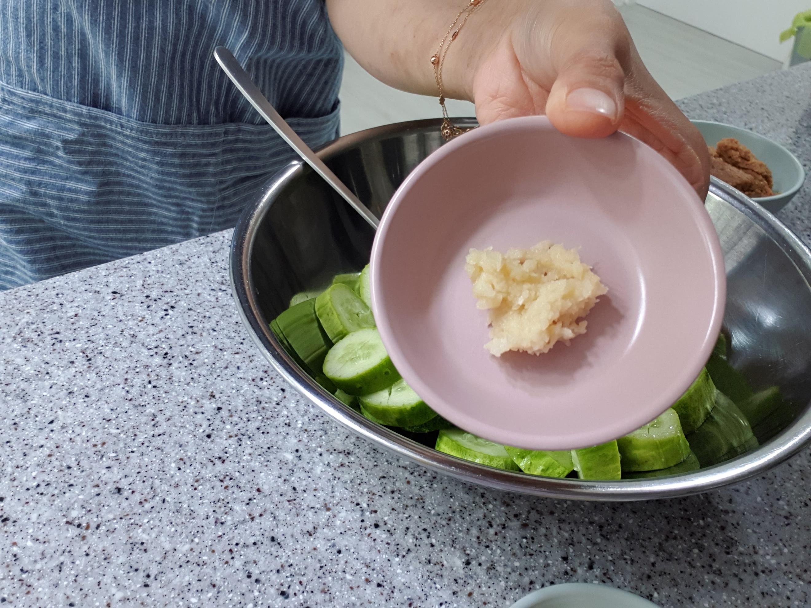 오이 2개, 된장, 다진마늘 1작은술, 참기름, 깨