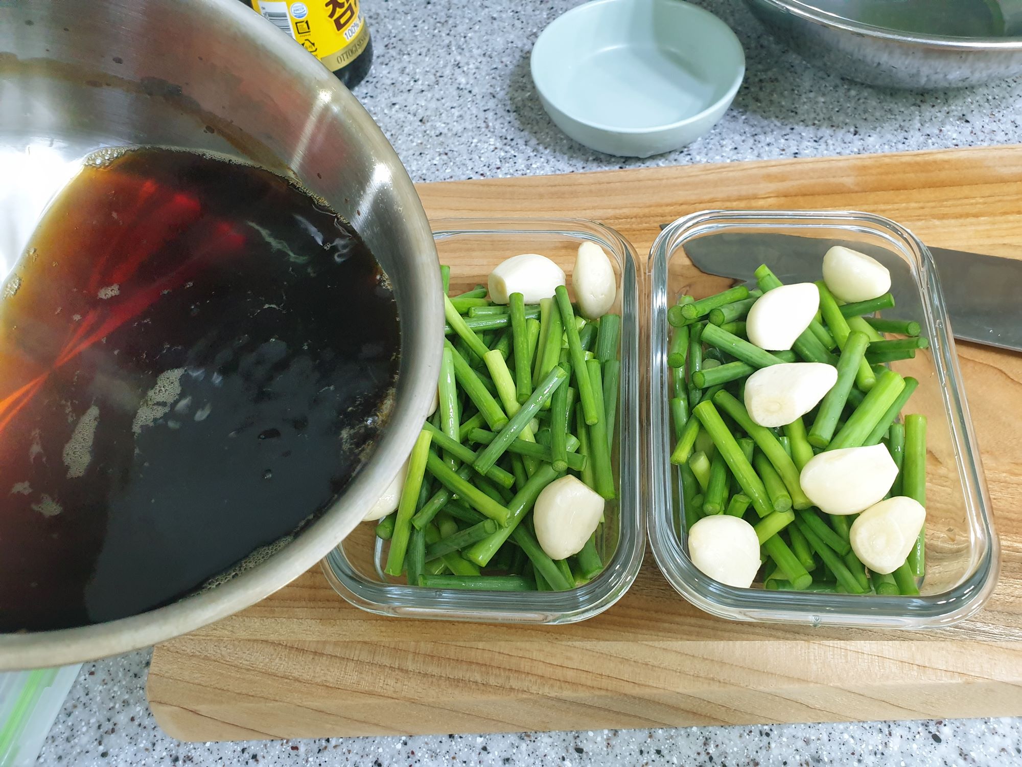마늘쫑 손질이 끝났다면 간장물을 만들어야 해요