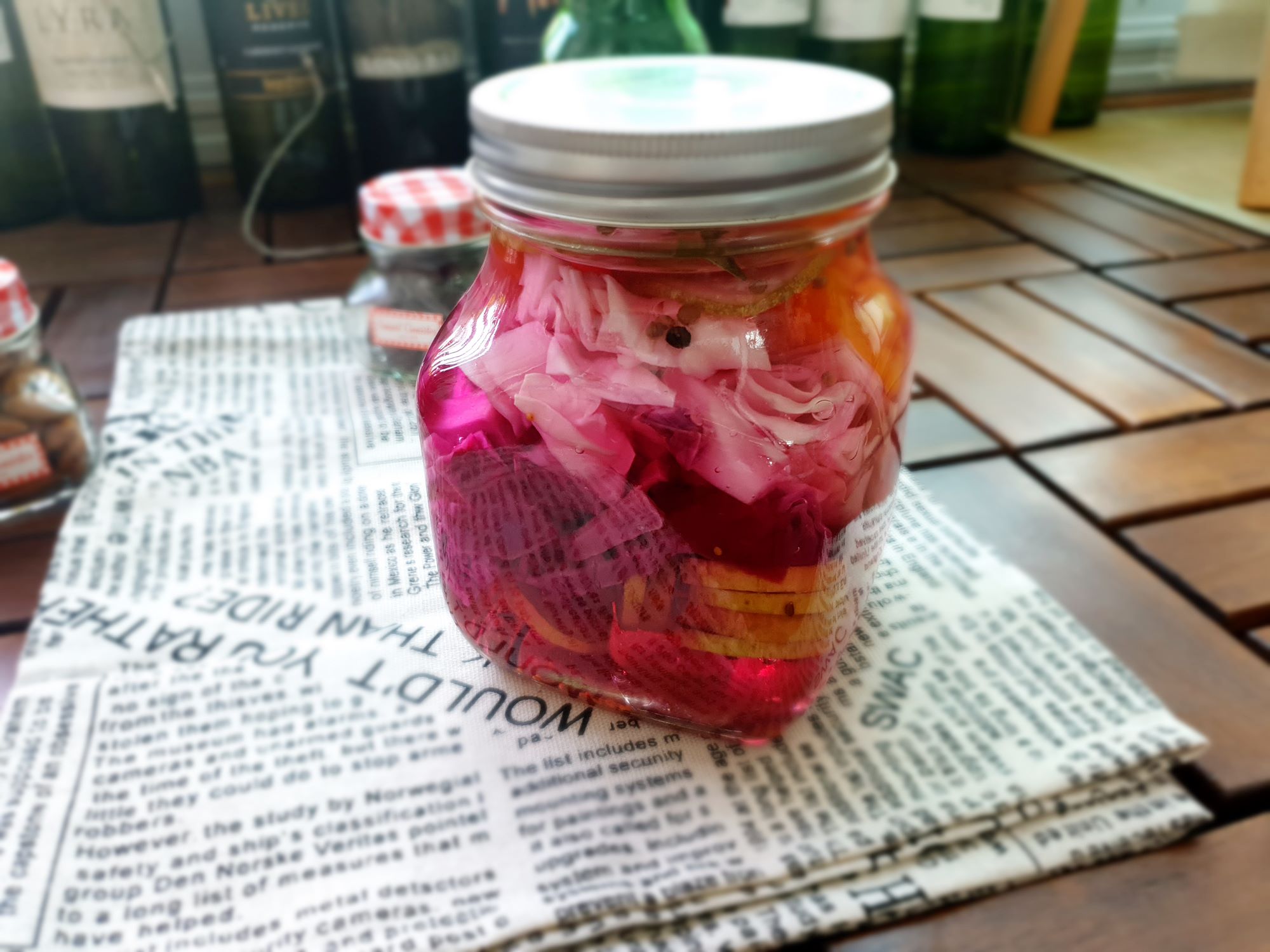 보랏빛이 도는 피클을 만들거라 적양배추를 조금 넣어줄거에요