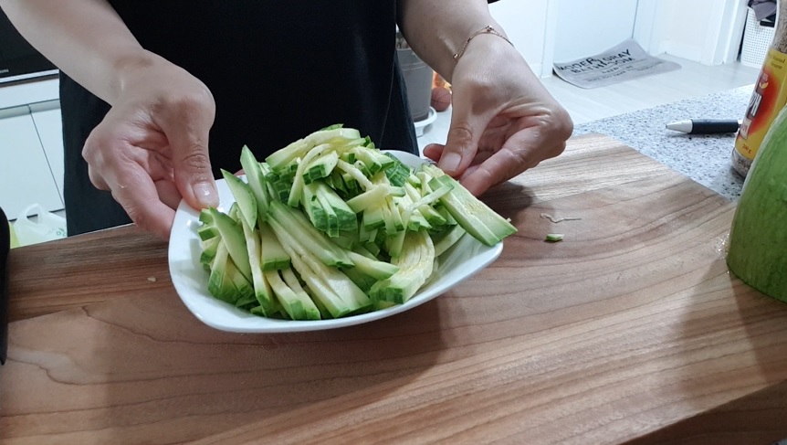 반달로 썰어도 좋지만 저는 비빔밥에 넣어 먹을거라