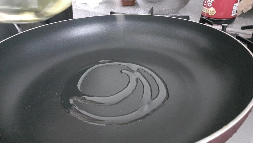 달군 팬에 식용유 3큰술 정도 둘러줍니다.