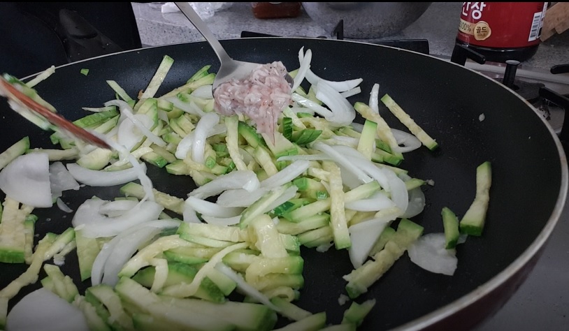 새우젓 넣어 감칠맛나게 애호박채볶음 만들기