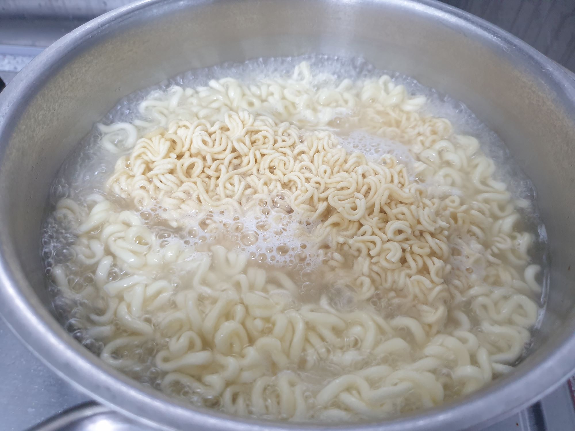 2분정도 먼저 끓여준 다음 신라면볶음면을 넣어줍니다