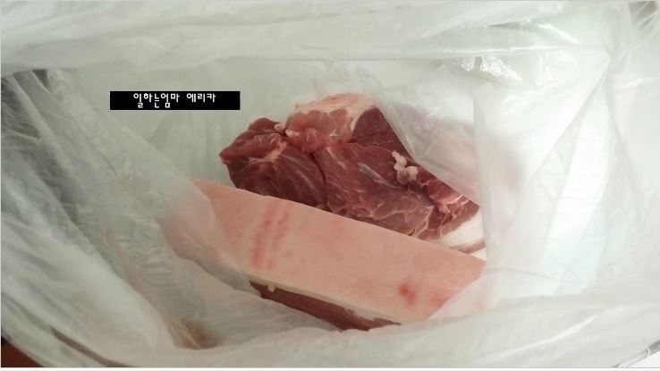 이제 돼지고기 잡내를 없애는 작업을 해야 하는데요
