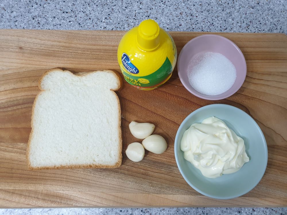 재료 : 식빵1, 마늘, 마요네즈, 설탕,