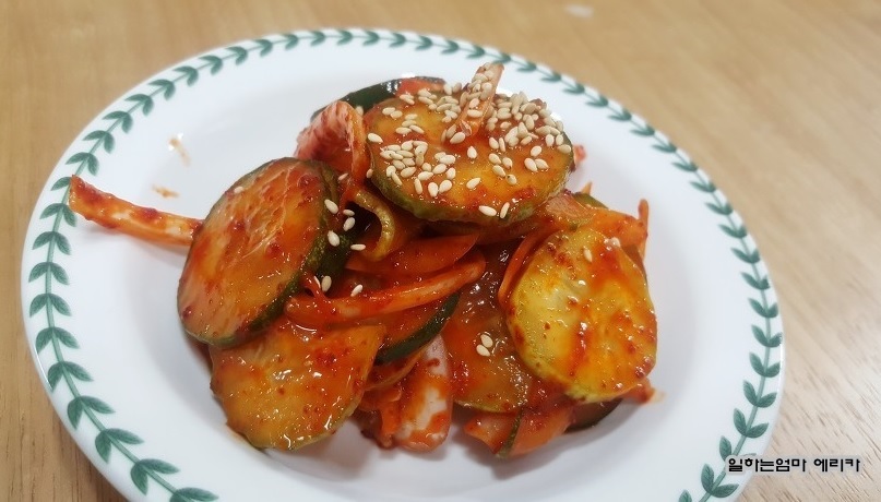 절여진 오이는 물기롤 꽉 짜주세요