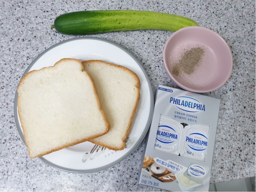 식빵2, 오이1, 크림치즈, 후추가루 (파슬리 약간)
