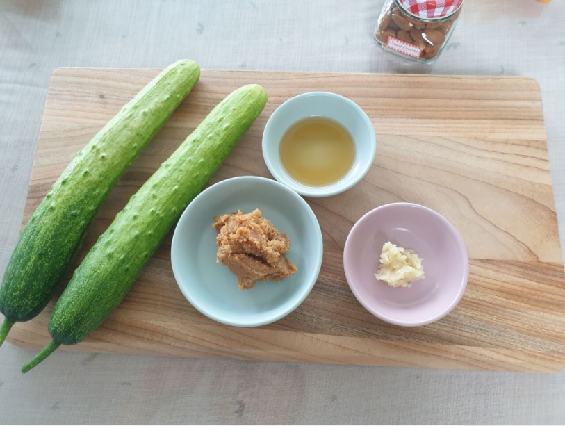 오이2개, 된장, 다진마늘 1작은술, 참기름, 깨
