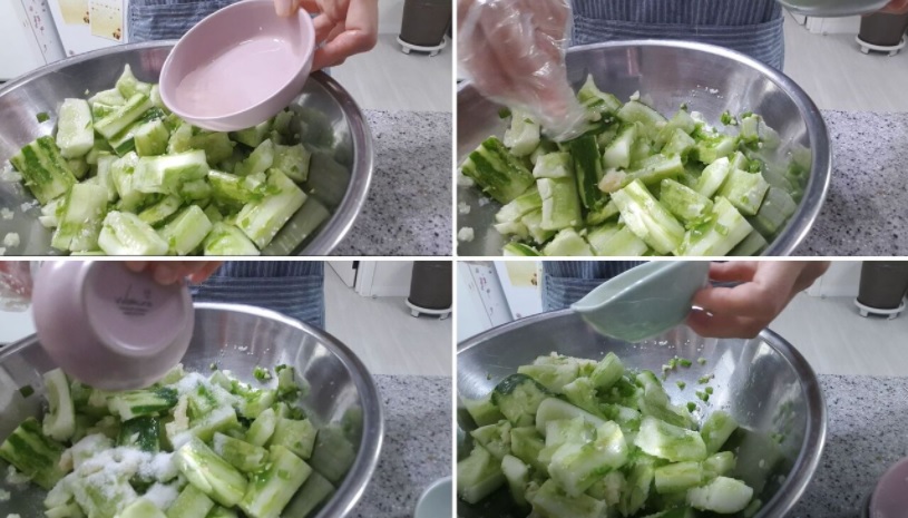 오이2, 청양고추2, 다진마늘, 설탕, 식초, 매실액 등